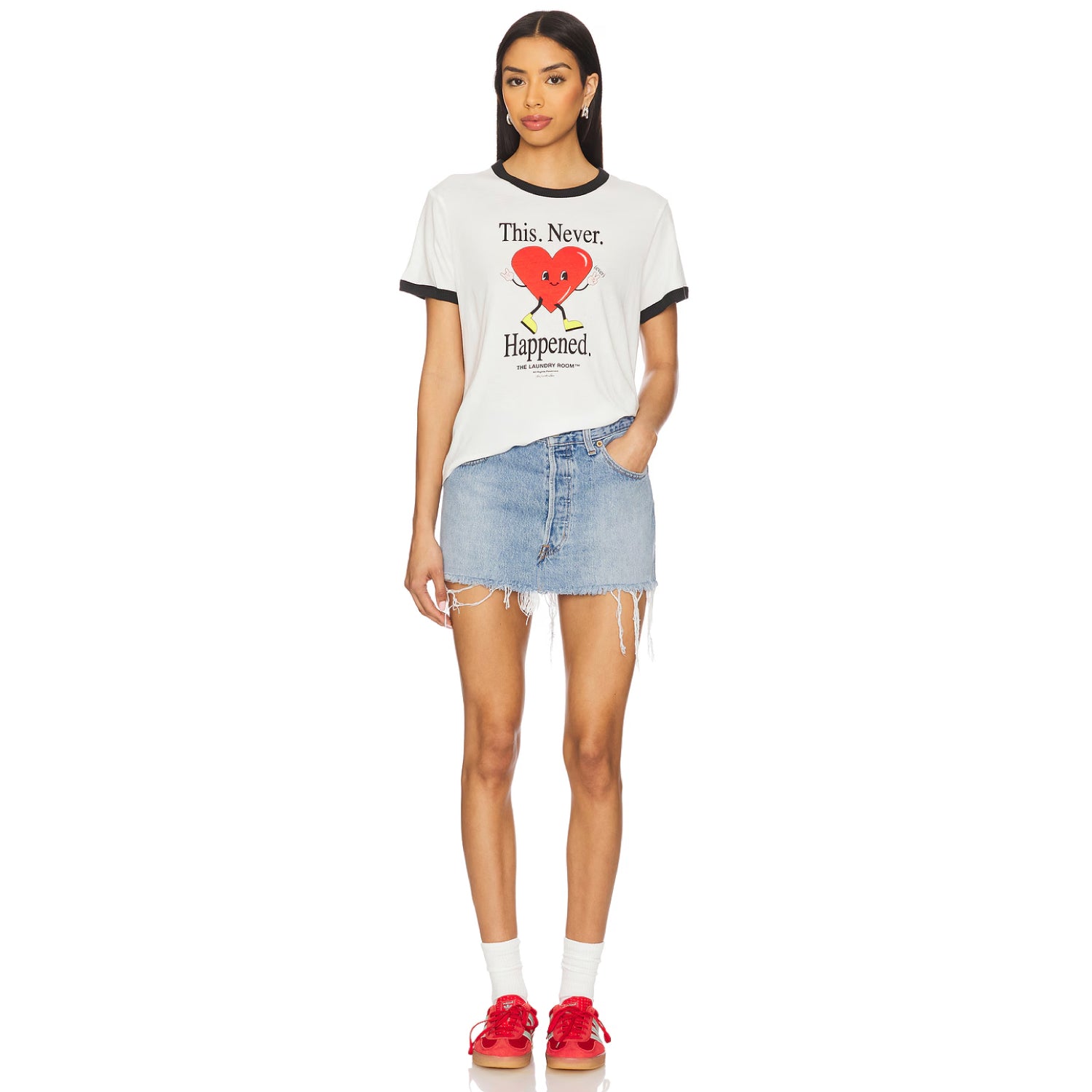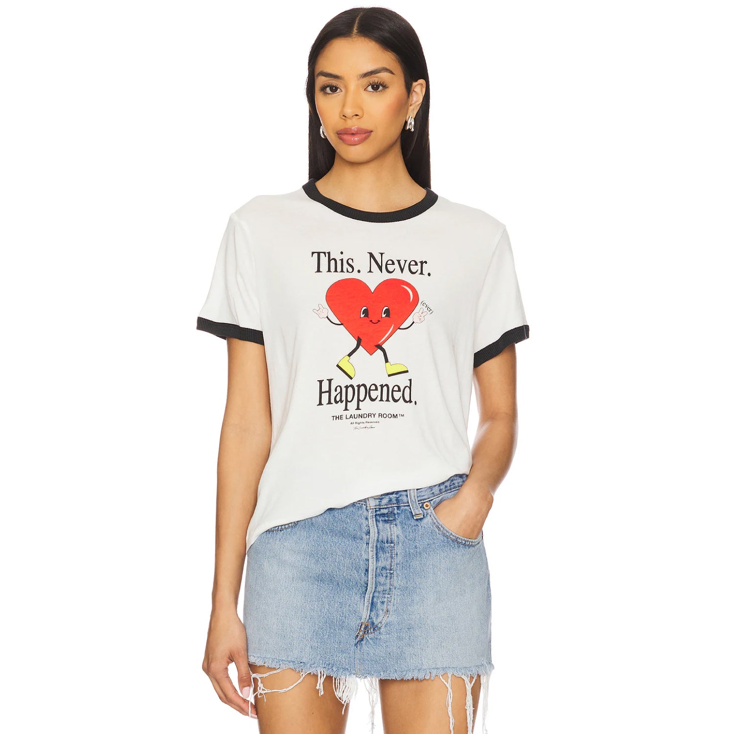 This. Never. Happened. - Perfect Ringer Tee - White & Black Snow